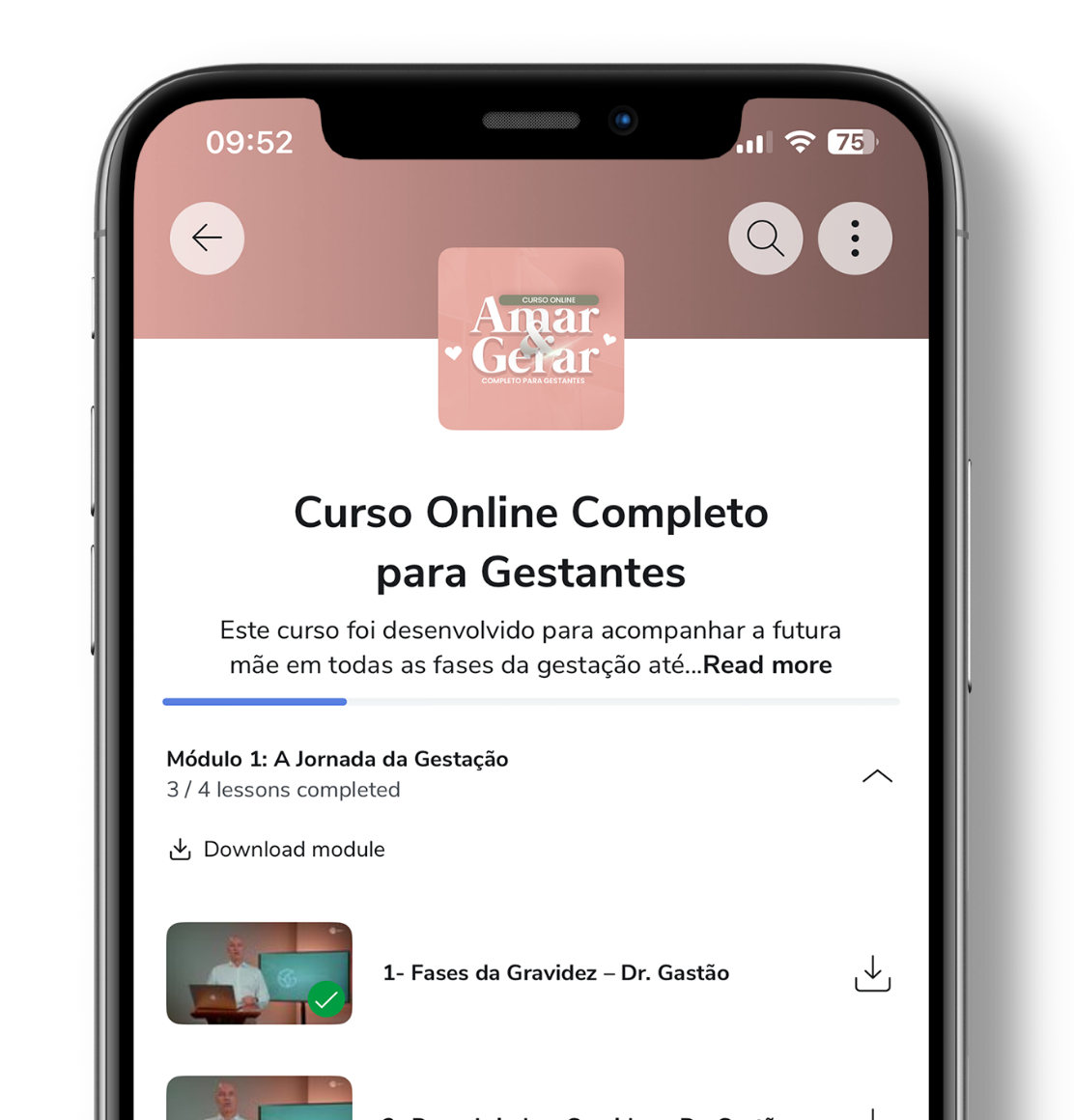 Nosso curso é a semente desse encontro transformada em uma jornada digital, para que a segurança e o carinho do Dr. Gastão acompanhem cada mãe!